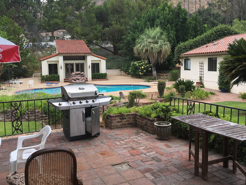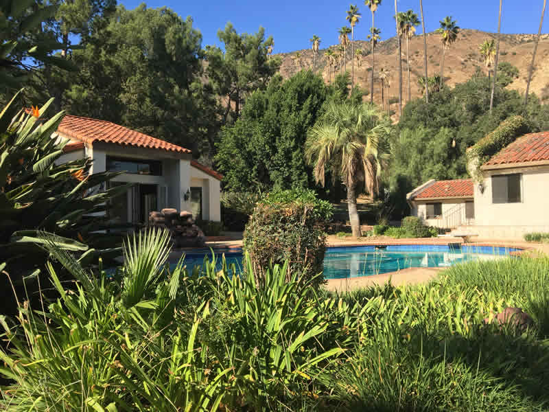 This five acre park-like estate is located at the foot of Glendora Mountain, in a very quiet and natural setting. The grounds are very large, and while the house is surrounded by lush landscaping and enclosed yards, we have 20 private acres of natural forest and hiking trails behind the house, complete with deer, squirrels, owls, hawks, woodpeckers, coyote, bobcats, rattle snakes and bears. Yeah.. I said it. . . Bears.